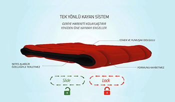 Minderin tek yöne hareket eden sistemi, geriye doğru hareketi kolaylaştırırken, yeniden öne kaymayı önler. Nefes alabilen özelliği sayesinde terletmeyen minder, dolgulu yumuşak yüzeyi ile engelliye konforlu bir oturuş sağlar. Esnek yapısı sayesinde defalarca kullanılsa bile formunu kaybetmez.